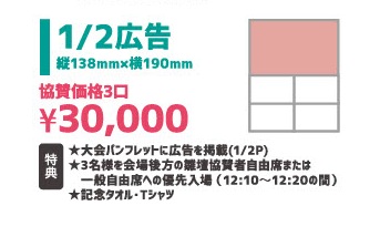・大会パンフレットに広告を記載(1/2P)(縦138mm×横190mm)