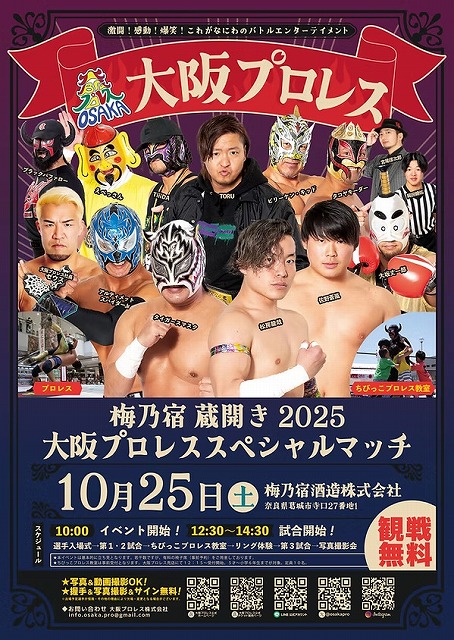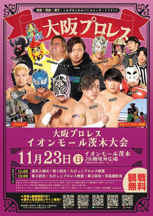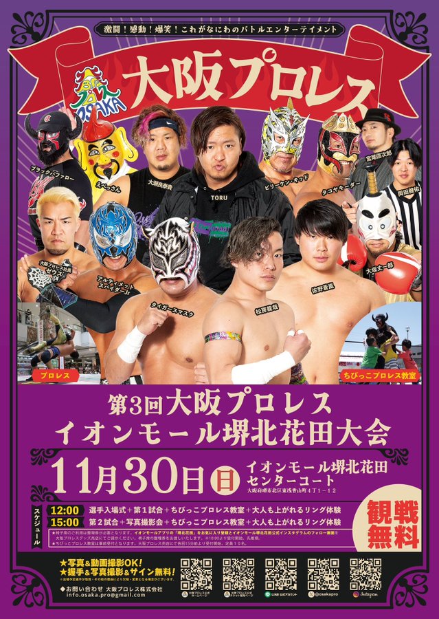 ★ちびっこプロレス教室は事前受付となります。大阪プロレス売店にて各回15分前より受付開始。定員10名。