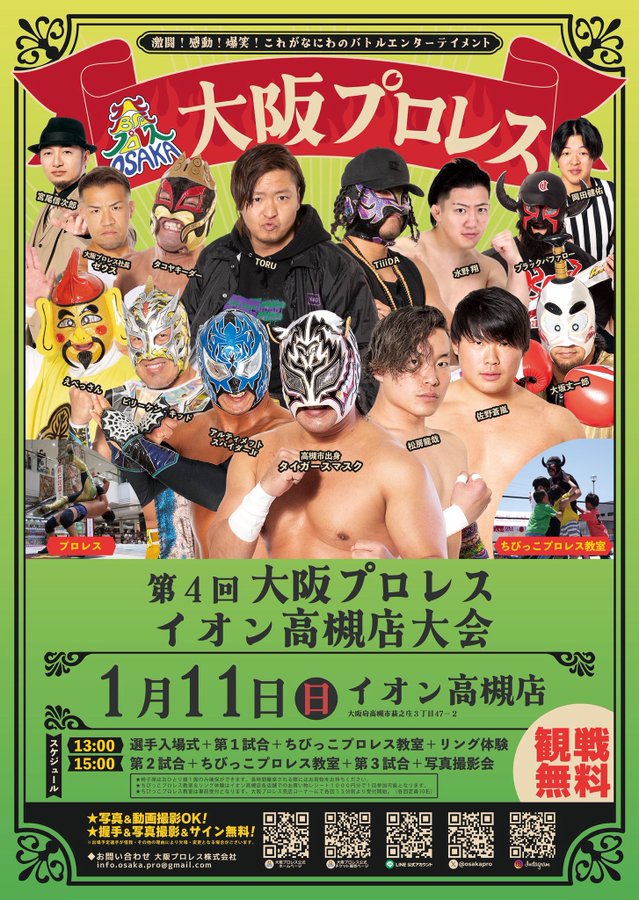 ★ちびっこプロレス教室は事前受付となります。大阪プロレス売店コーナーにて各回15分前より受付開始。(各回定員10名)
