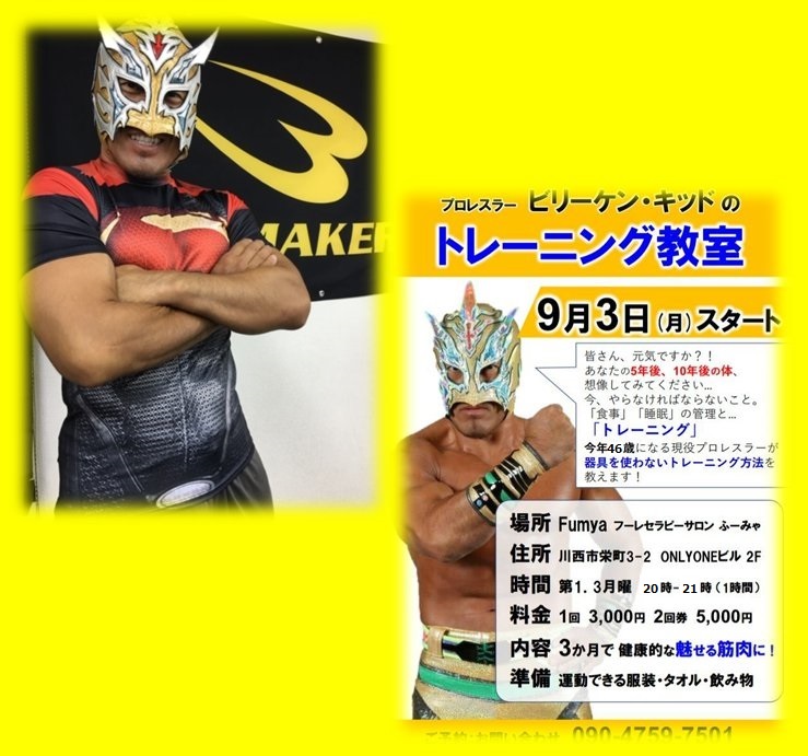 空手道場「誠拳塾」さんの道場をお借りして基礎体力やマット運動等、プロレスに必要な体力と技術をビリーケン・キッドが楽しく!激しく!明るく!指導します!